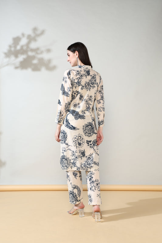 Luxe blue flower Drift Pure Cotton Suit set of 2