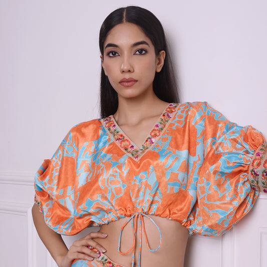 HOK ENSEMBLE-Royal goergette satin skirt with kaftan style top