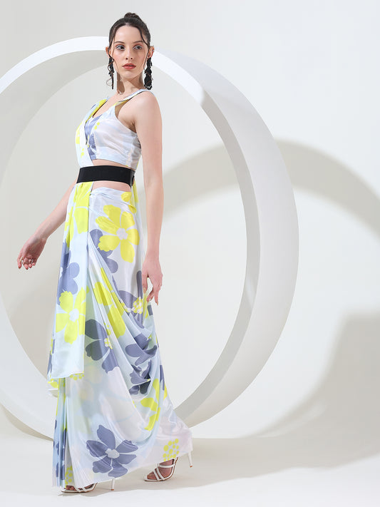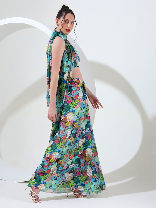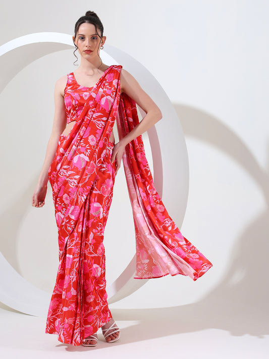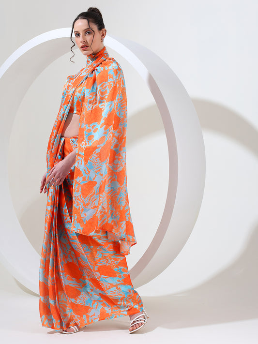Modern fusion goergette satin stitched saree