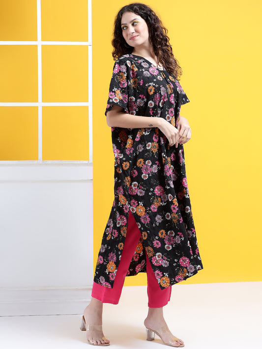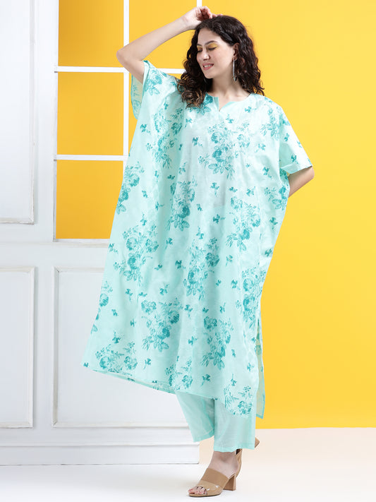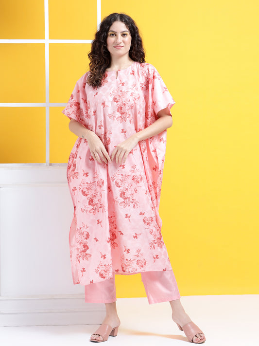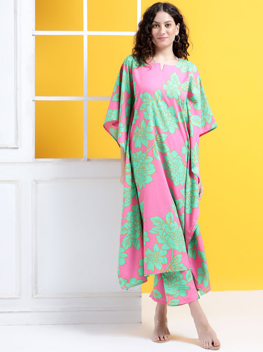 Vibrant Blossom Kaftan Style Suit - Set of 2