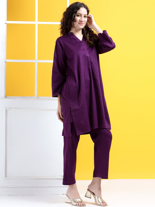 Solid Sophistication Kaftan Style Suit- Set of 2