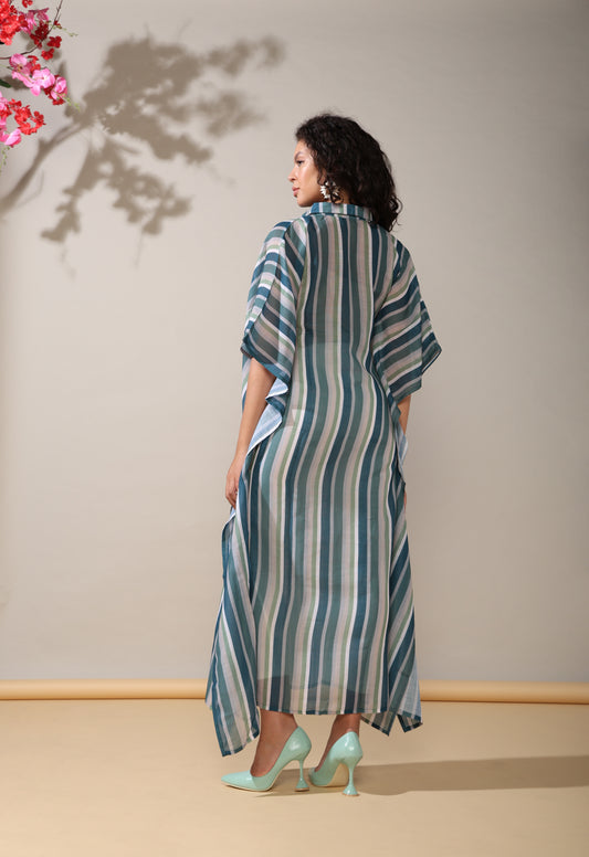 Stripes Linen long kaftan dress