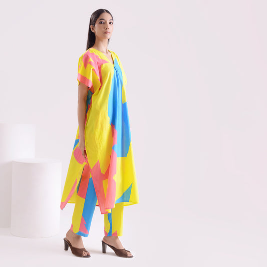 Lime pinky blue poplin Kaftan style suit set of 2