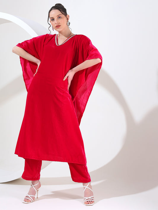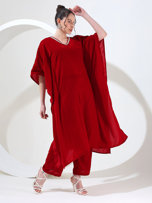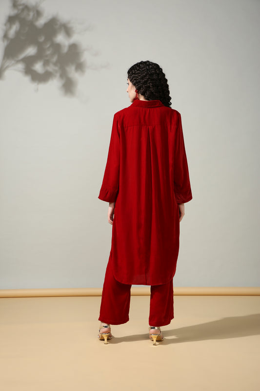 HOK ENSEMBLE - Maroon Velvet long Coord set