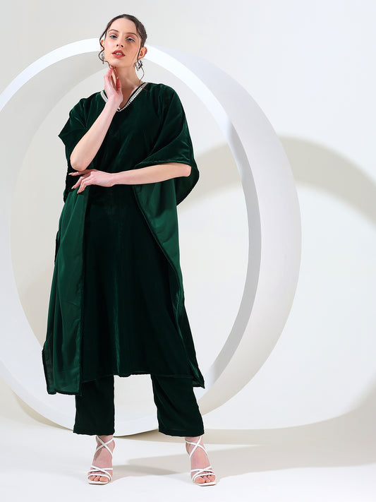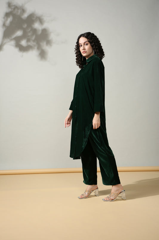 HOK ENSEMBLE - Green Velvet Long Coord set