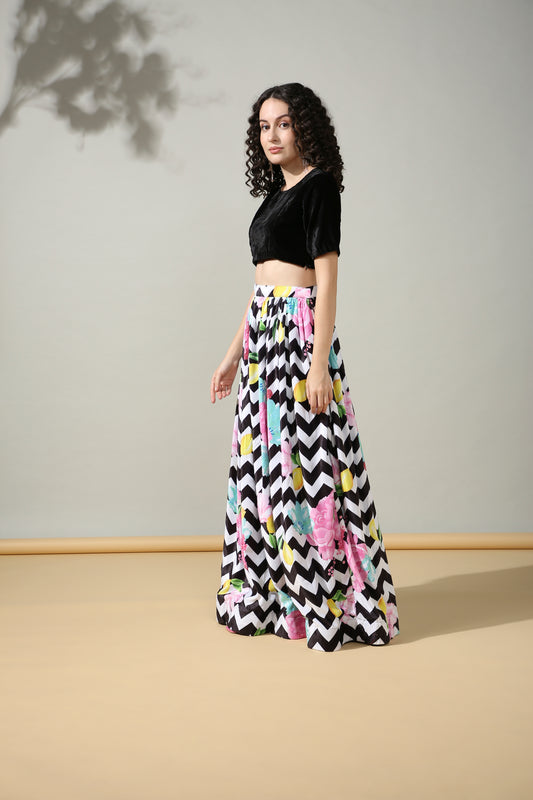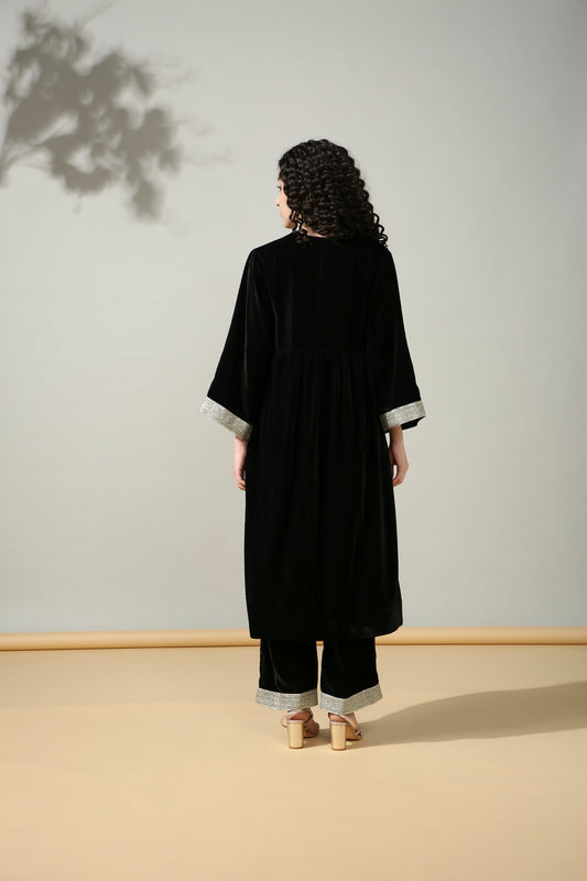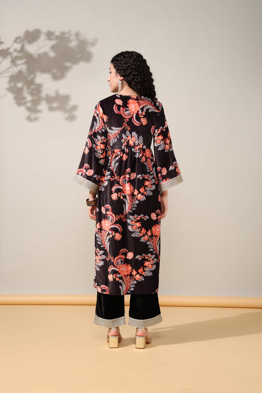 HOK ENSEMBLE - Printed Black floral Velvet Suit set