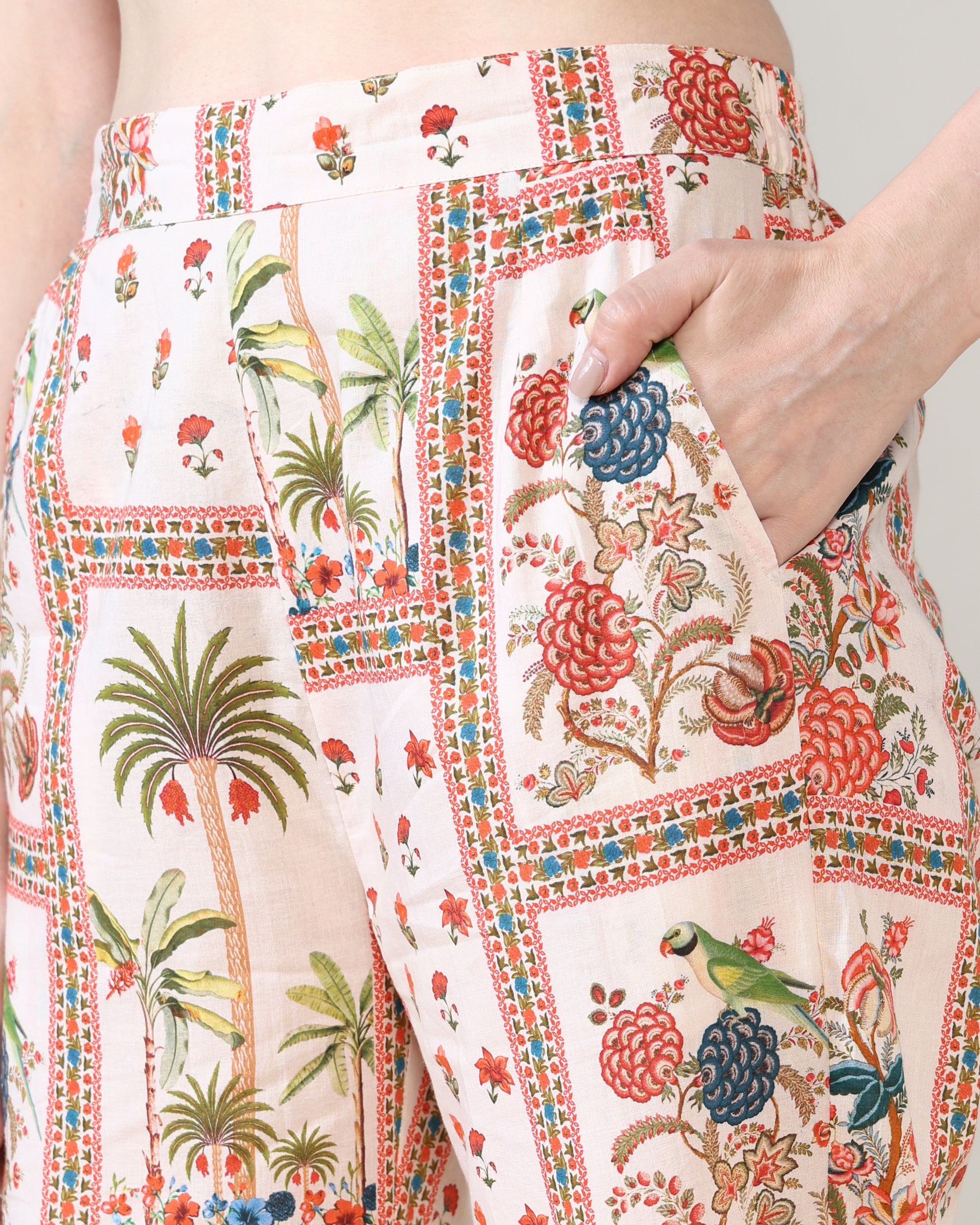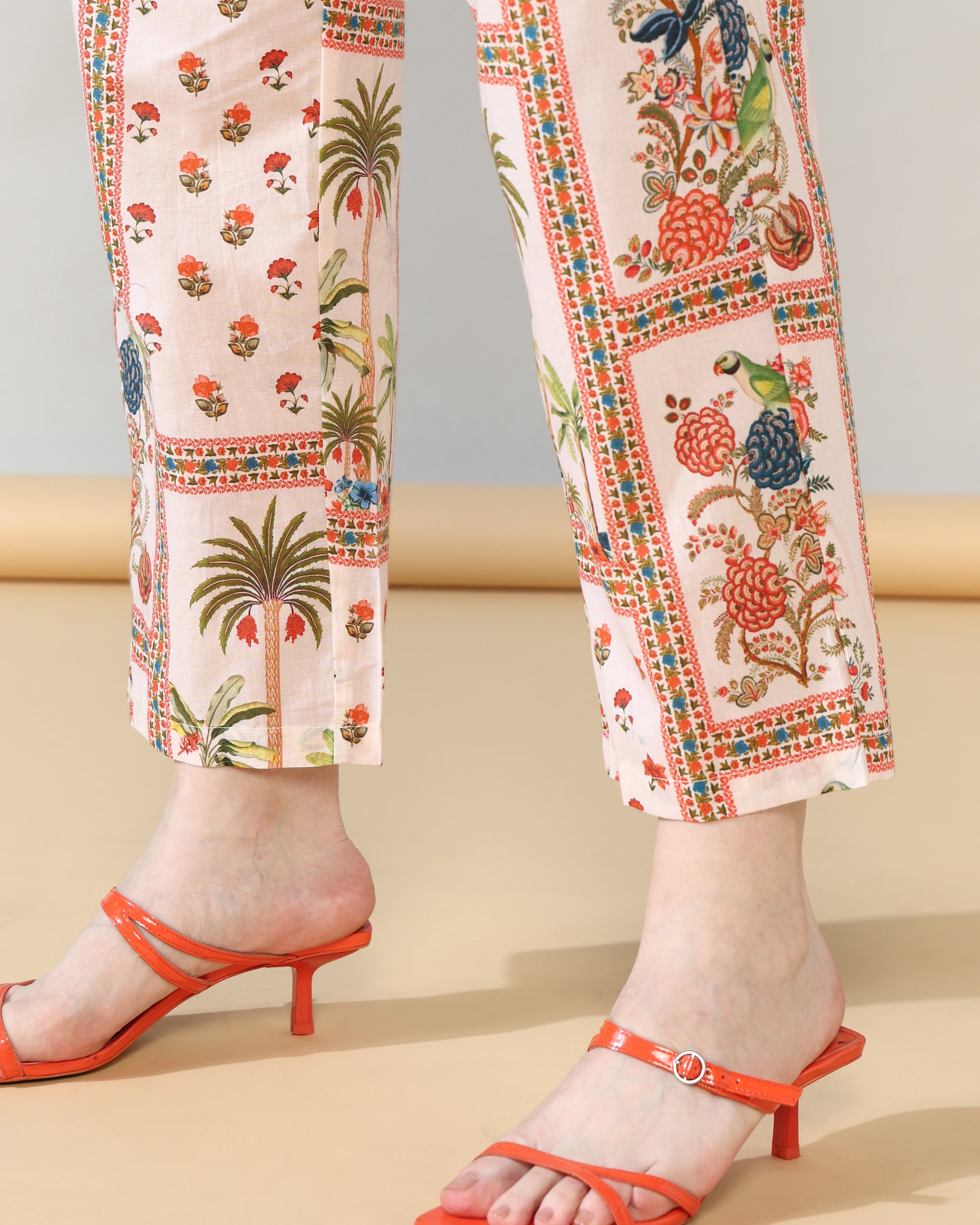 Whether for brunch, work, or casual gatherings, this ensemble ensures you radiate confidence and charm, seamlessly blend comfort and style, thanks to their printed fabric and elasticated waist.