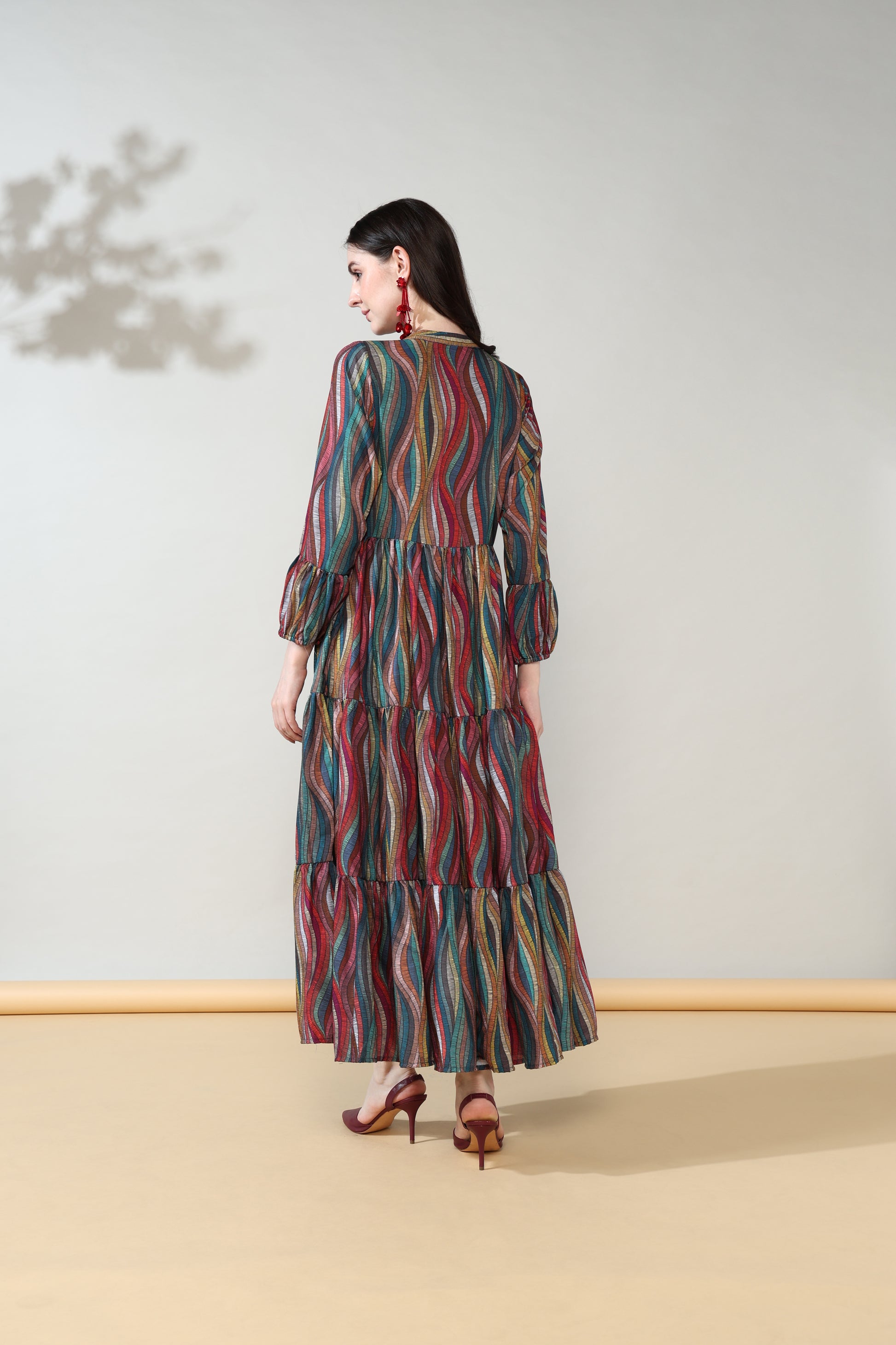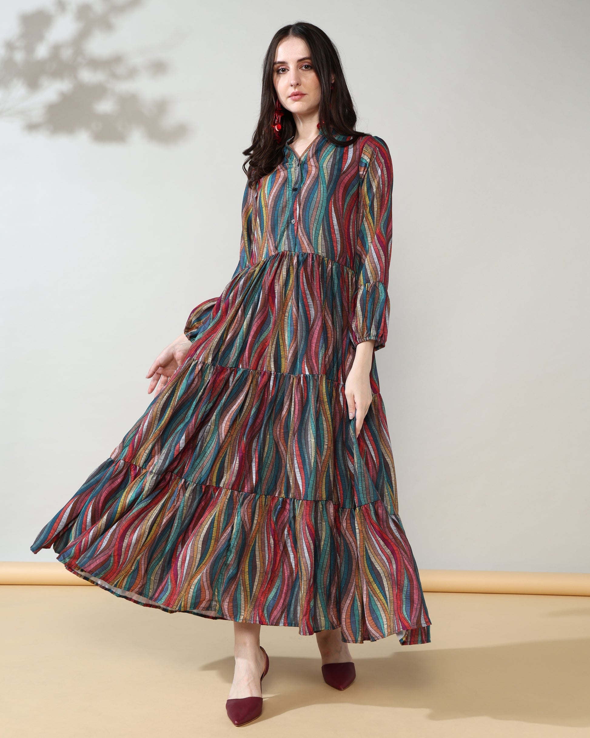 A premium Rayon long dress with elegant print for your everyday chic. A premium rayon long dress with elegant print for your everyday chic.