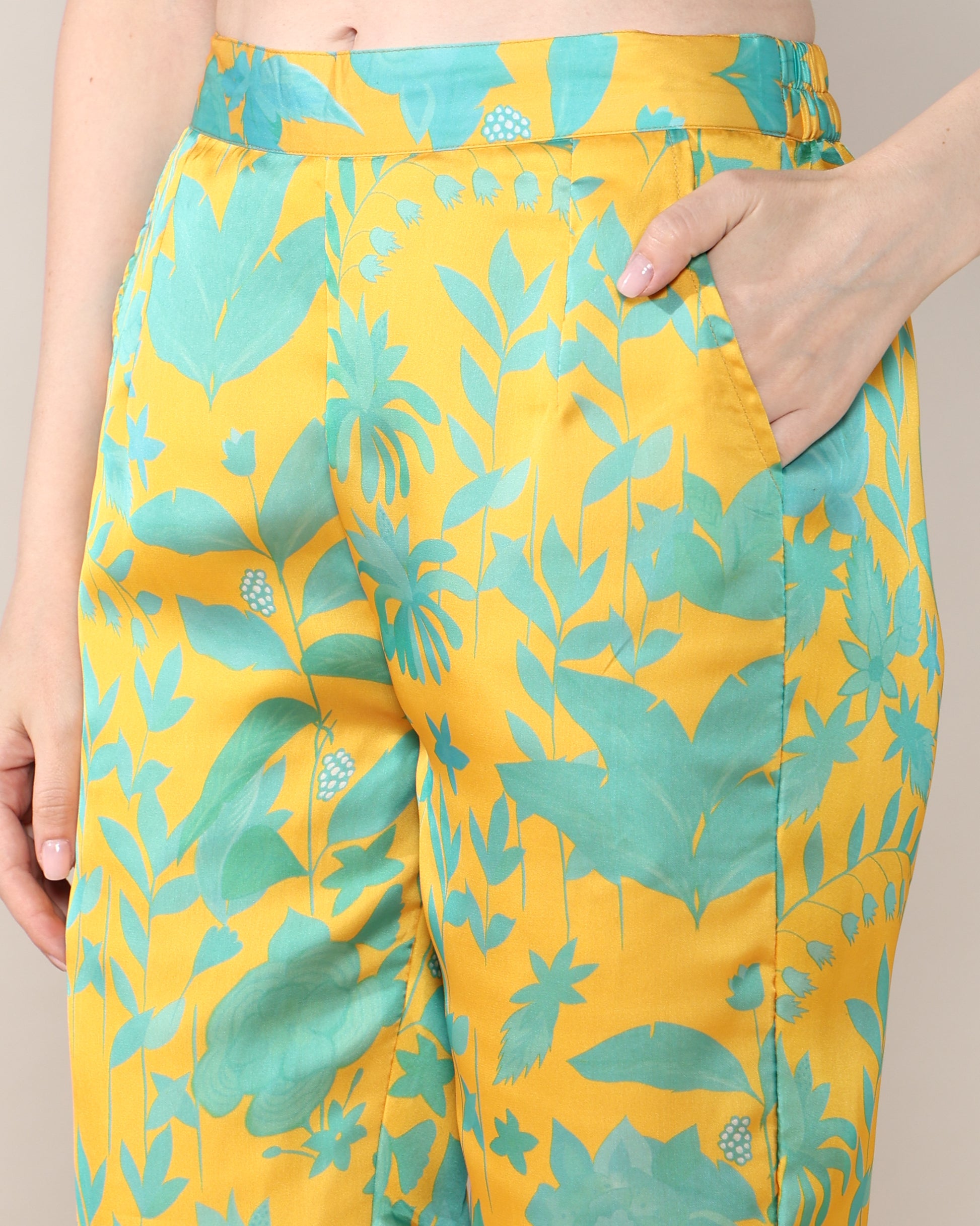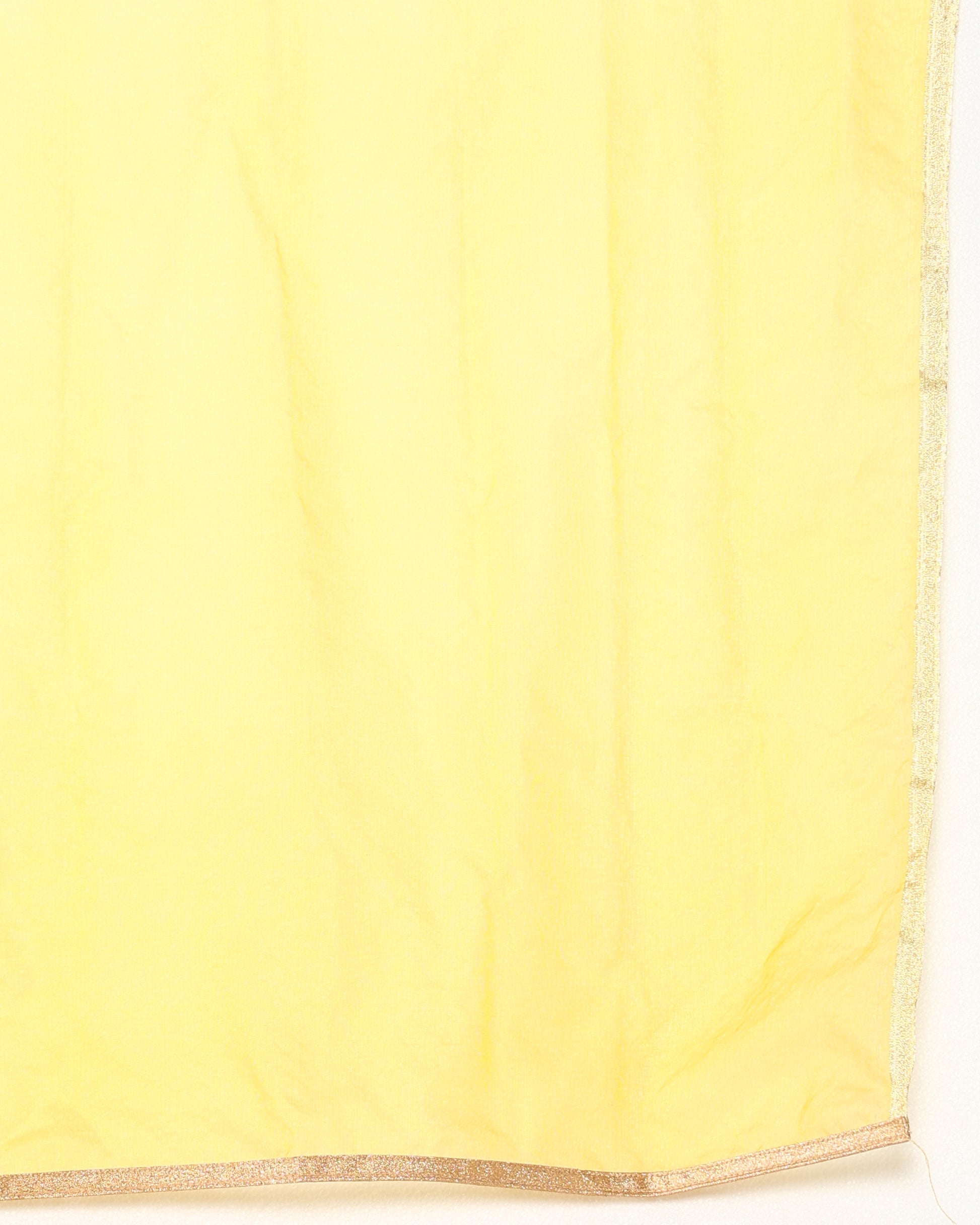 Mustard blue Georgette satin suit with organza dupatta set of 3